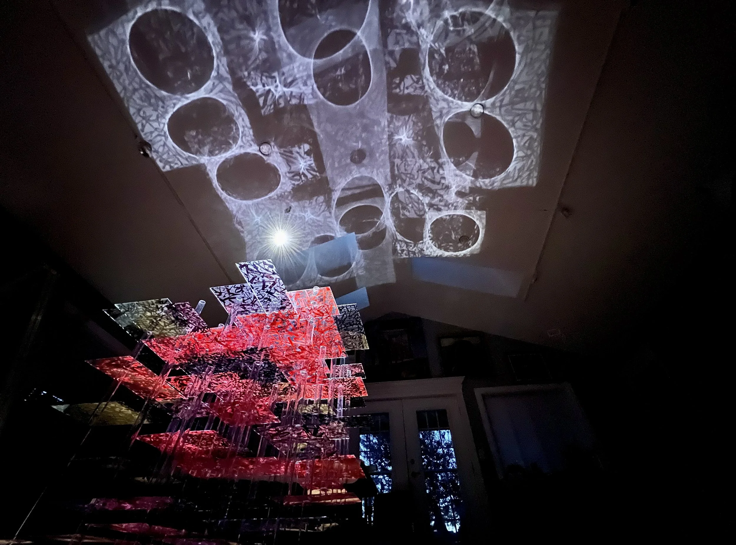 /PVC tube, acrylic sheet, wood board, acrylic paint, light